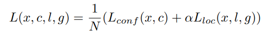 object detection에서는 confidence loss와 locization loss 둘 다 고려해야 하기 때문에 논문에서도 위와같은 loss 수식을 제시 하였다.