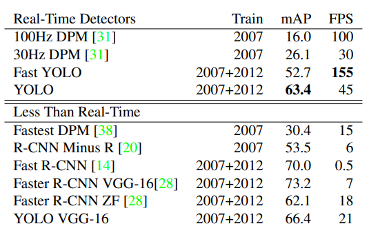 이러한 단점들로 인해 YOLO v1의 속도는 엄청 빠르지만 반면에 정확도가 SOTA에 비해 낮았다.