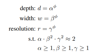 - 여기서 width와 resolution에 제곱항이 있는 이유는 depth(Layer)가 2배 증가하면 FLOPS는 2배가 되지만 width와 resolution은 그렇지 않기 때문이다.