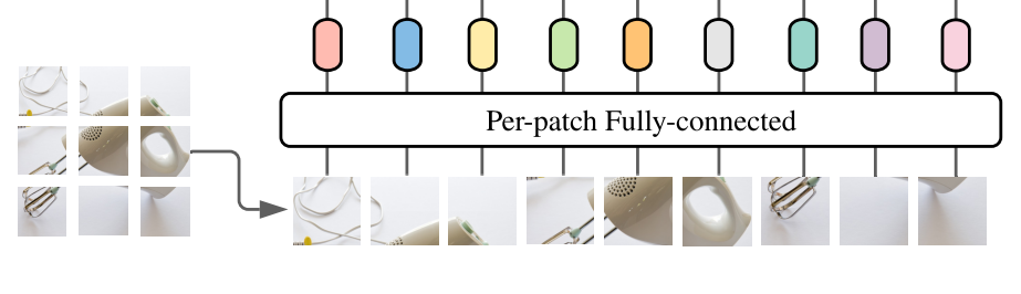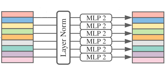- 1. ViT와 마찬가지로 Patch embedding을 먼저 수행한다. base model은 16x16 패치사이즈로 이미지를 분할하게 되고 각 패치당 정해진 embed dimension으로 벡터화 시킨다. (ViT의 position embed를 추가하지 않은 이유는 token mixing MLP에서 입력 토큰의 순서에 의해 위치를 배운다고 가정했기 때문이다.)