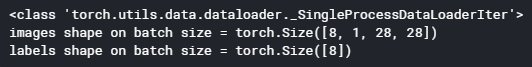 - 그리고 DataLoader에서 나온 데이터의 타입은 torch.Tensor이다.