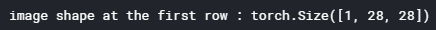 image의 shape은 (channel, width, height) 로 Pytorch에서 shape을 만들어주고 gray scale이기 때문에 channel은 1이다.